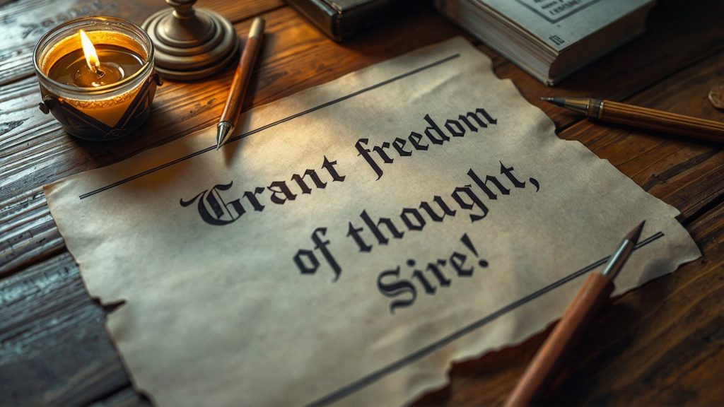 Thematisiert Freiheit des Denkens, politische Unterdrückung und Idealismus.