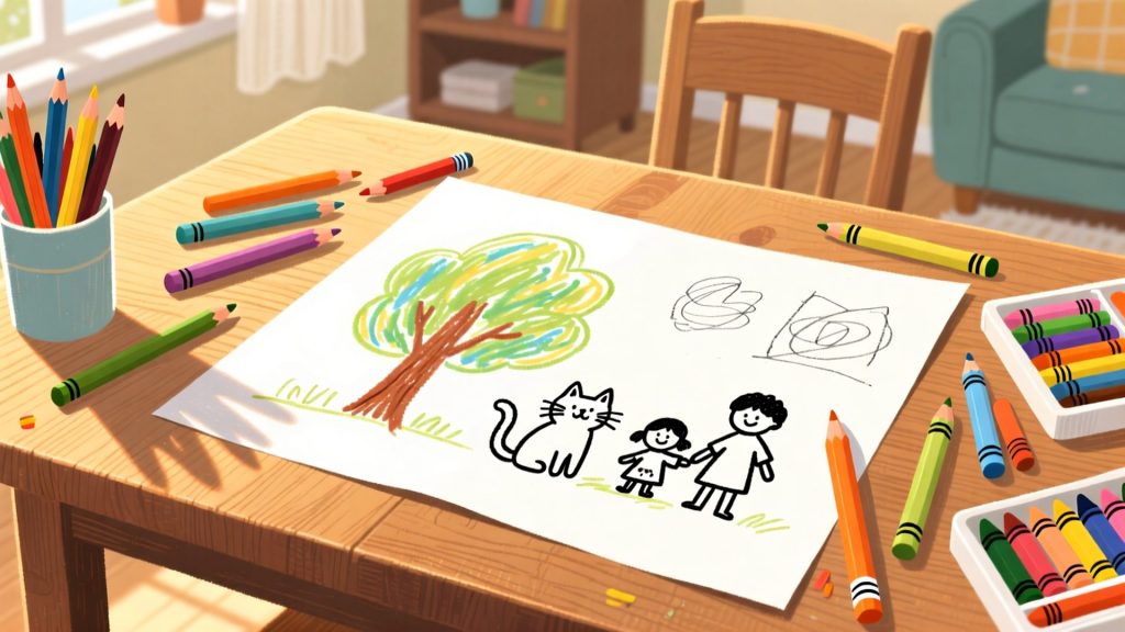 Nach der Schule zeichne ich gern. Ich zeichne einen Baum, eine Katze oder meine Familie.